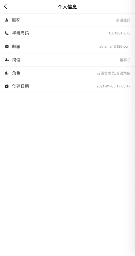 目前已经实现登录、我的、工作台、编辑资料、头像修改、密码修改、常见问题、关于我们等基础功能。
